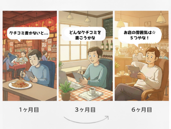 特に意識せずとも、訪れたお店で「写真を撮ってクチコミを書こう」と
